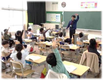 (写真上・中)1年1組 国語科:単元「よう日と日づけ」の学習を行っています。日づけの読み方を踏まえて、自分の誕生日をペアで教え合いをしています。1〜9日、20日の読み方をしっかり身に付けた1年生です。