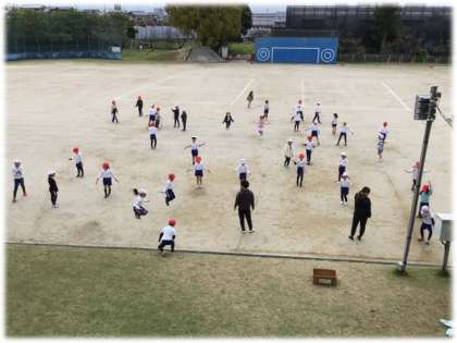 (写真中・下)2年2組、3組 体育科:なわとび練習をしたり、ボール運動を行ったりしています。すでに、来週から全校で始まるなわとび練習に向けて、休み時間にも個人練習をしている2年生もいます。「今年の目標はね・・・」昨年の自分の取組をふまえて、今年の目標を設定し、達成に向けて動き始めている2年生の姿勢がすてきです。