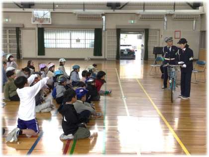 こちらは、3年2組の自転車教室の様子です。