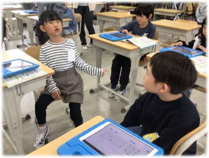 2年1組では、5校時に音楽科の研究授業を行いました。午前中に学区探検を行い、たくさん歩いた2年生ですが、疲れを感じさせない元気いっぱいに授業に臨む姿があふれていました。
