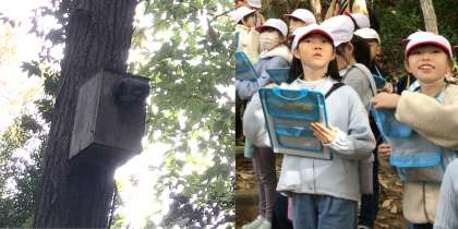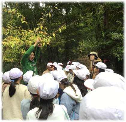 11月18日(火)4年生 校外学習の様子2 公開日 2025/11/18 更新日 2025/11/18 各学年から 森の様子について、インストラクターの方からの投げかけでじっくり観たり、考えたりしました。4年生が森を観察している際に、ムササビが巣箱からひょっこり顔をのぞかせる場面もありました。 4年生 5678組