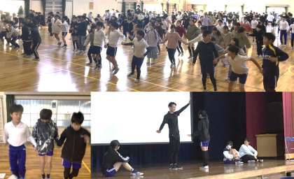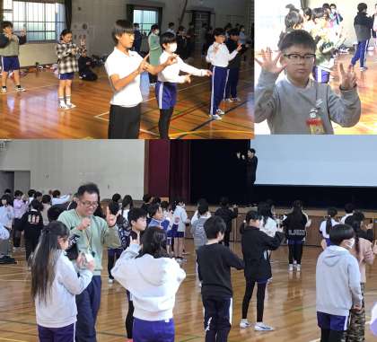 「体がぽかぽかしてきた」決してハードな動きではないですが、考えながら体を動かしたり、相手の動きを見ながら、自然とコミュニケーションを図ったりと、体育館は子どもたちの笑顔いっぱいの元気な姿があふれる時間になりました。