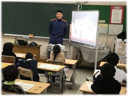 今日は、消防署から消防士の方を講師に招いて、消防署の役割や消防士の方がどのような仕事をしているのか、クイズ形式で答えるなかで学びました。初めて知ることも多く、講師の方のお話に驚いたり、さらに「もっと調べたい」と興味を高めたりする時間になりました。来週は、実際に消防署の見学も予定しています。今日学んだことや、もっと知りたいと思ったことを踏まえて、来週の校外学習につなげていきます。