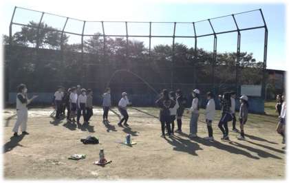 こちらは、学級の長なわ8の字跳びの練習の様子です。