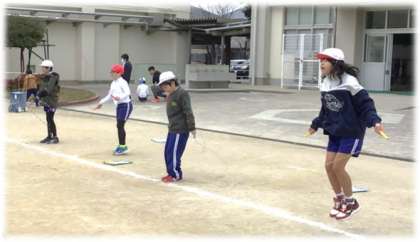 また、全校のトップバッターとして、今日は5678組がなわとび記録会を行いました。自分の選んだ種目を計測時間中、何度も何度も挑戦する姿がすてきでした。寒風の中でも、跳び続ける姿をたくましく感じました。