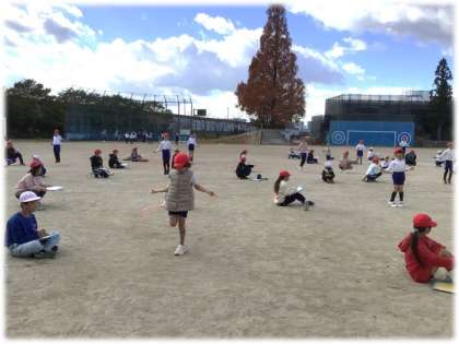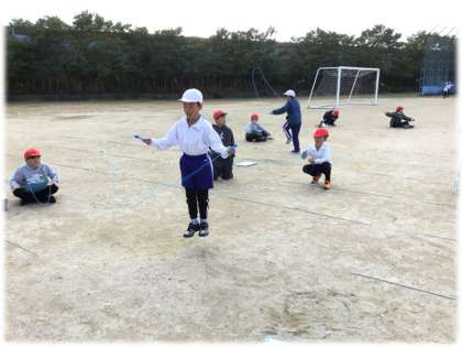 最後は、5年生が学級長縄8の字跳びを披露してくれました。跳ぶ順番を待っている間もリズムを刻む「ハイ!ハイ!」というかけ声を出し合ったり、引っかかってしまっても「ドンマイ」と声をかけ合ったりするかっこいい5年生の姿に、2年生の目も釘付けでした。