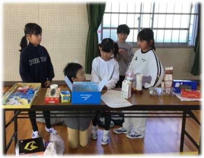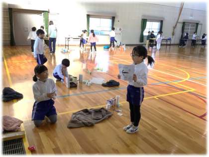 学年で1年生を招待する「おもちゃまつり」の流れについて練習を行っていました。自分たちで「1年生に喜んでもらいたい」と一生懸命に作ったおもちゃがずらりと並んでいます。楽しく遊んでもらおうと、説明も1年生に伝わるように練習していました。相手意識をもって準備をしている2年生の表情は、すてきな「お兄さん」「お姉さん」でした。本番が楽しみですね。