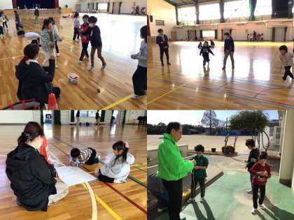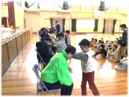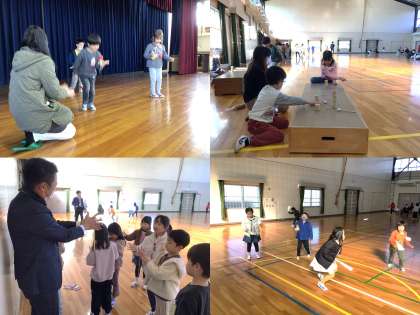 1年生は、生活科の学習として昔遊びにチャレンジしてきました。けん玉、だるまおとし、あやとり、羽根つき、お手玉、竹とんぼ、おはじき、コマと一通り経験したのち、再度チャレンジしたい遊びを3種類決めて、地域や保護者の方を「昔遊び名人」としてお招きし、一緒に昔遊びを楽しみました。名人からアドバイスをもらいながら、時間いっぱい昔遊びに夢中になって取り組んだ1年生です。