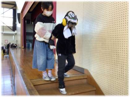 「段差があります。気を付けてください」「何か困っていますか。お手伝いします」介助する側の4年生からは、相手のことを思うやさしい言葉がけが聞こえてきました。