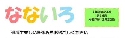 12月22日(月)1年生 学年通信「なないろ」第14号を発行します