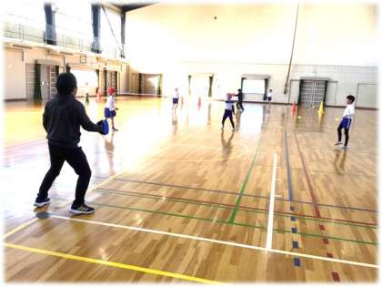 (写真中)2年2組 体育科:寄贈していただいたラケットを使って、テニピンに取り組んでいます。友達同士や担任とでラリーが続くように打ち方を考えたり、壁打ちの練習をしてラケットの振り方のこつをつかんだりしていました。みんな、とても楽しそう!