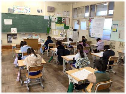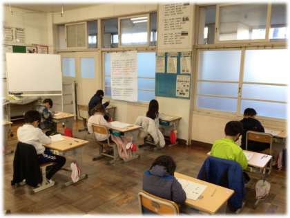 (写真下)1年2組 学力検査の様子