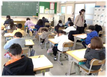 1月22日(木)3年生 今日の様子 公開日 2026/01/22 更新日 2026/01/22 各学年から 3年生の算数の学力検査に取り組んでいる様子です。最後まであきらめずに問題に向き合います。 (写真上)3年1組 (写真下)3年2組 3年生