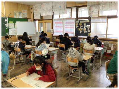 昨日、国語、理科、外国語を実施した5年生。今日は、算数、社会、知能検査を実施しました。2日間、午前中は集中力を切らさずに取り組む姿がさすがでした。