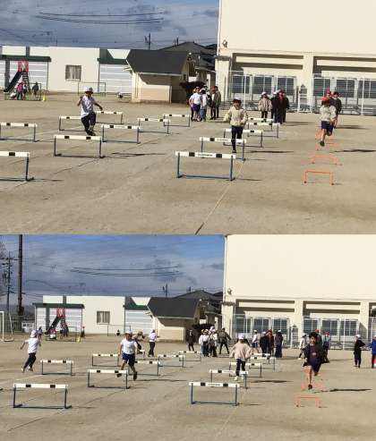 1月22日(木)4年生 今日の授業の様子 公開日 2026/01/22 更新日 2026/01/22 各学年から (写真上・中)4年1組 社会科・総合:社会科や総合的な学習で学んできたことを学習発表会で保護者の方に分かりやすく伝えようと意欲的にまとめの準備を進めています。説明をより分かりやすくするために、動画づくりに取り組むチームもありました。 (写真下)4年2組 体育科:ハードル走に取り組んでいます。ハードル間をタイミングよく走り、跳ぶことを意識しながら練習していました。 4年生