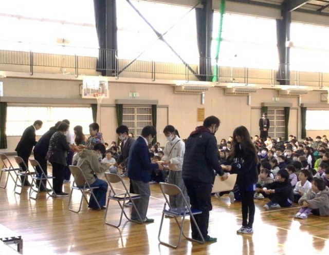 今年度も、授業や環境整備、安全の見守り等に多くの地域・保護者ボランティア方々、講師の方々がお力をかしてくださいました。本当にありがとうございました。本日は、子どもたちから支えてくださった皆様に感謝の気持ちを届けるための感謝の会を開きました。