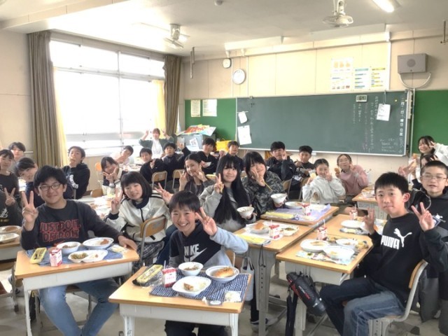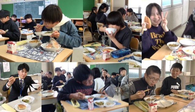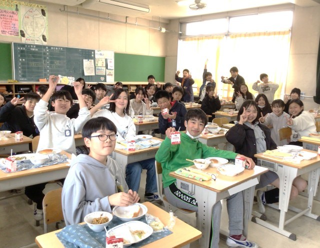 6年生最後の給食風景です。どの学級も、感謝の気持ちで、もりもり、おいしく小学校最後の給食を味わいました。