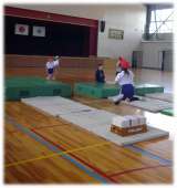 とび箱を元気よくジャンプ!マットの上もリズムよくぴょんぴょん!最後は、緑のマッ...
