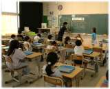 (写真上)5年1組 算数科:関係図を使いながら、割合について学び合っています。 ...