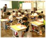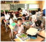 (写真上)5年1組 夏休み前にお道具箱を整理整頓しています。自分なりに整頓できた...