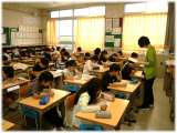 (写真上)6年1組 テスト前の見直しを一生懸命行っていました。「じゃあ、今からテ...