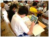 (写真上・中)5年1組 社会科:教科書に載っている二次元コードから自分の学習の復...
