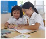 ペアで2場面の内容について、音読をし合っています。読み飛ばしがないように、互い...