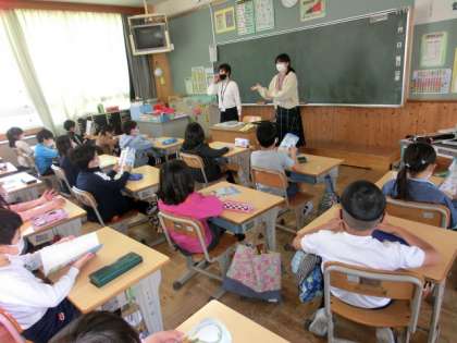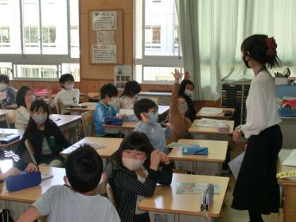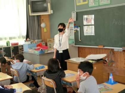 外国語活動の新しい先生が来ました。アメリカはユタ州出身のアンドレア先生です。初めて会った子どもたちもすぐに馴染み、自分の好きな食べ物や嫌いな食べ物について教えていました。1年間よろしくお願いします。