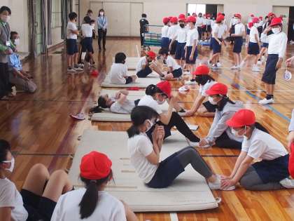 1時間という限られた時間の中、反復横跳び、長座体前屈、上体起こし、立幅跳びの4種目の測定を終えました。
