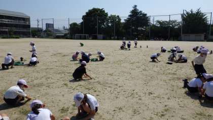 朝の涼しい時間帯に、2年生全員で校庭の草取りをしました。もくもくと草取りをすることができ、抜いた草の山ができました。「一生懸命きれいにした校庭で、運動会をするのが楽しみだね。」という会話も聞こえました。子どもたちが思いをもって取り組んでくれ、とても良い時間になりました。