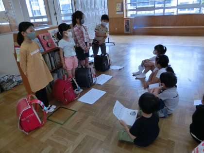 2年生が生活科の学習として、挙母小学校のことを教えてくれる交流会を開いてくれました。登下校の時に気をつけることや、掃除の仕方などを分かりやすく説明してくれました。きちんと聞いてくれた子には、招待状にシールを貼ってもらい、1年生はとてもうれしそうでした。また、堂々と発表してくれる2年生の姿を見て、「かっこいい」と言っていました。2年生に教えてもらったことを学校生活に生かし、1年後にはかっこいいお兄さんお姉さんになっているといいなと思います。