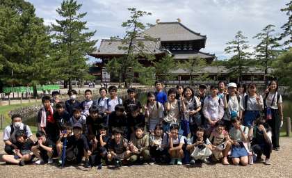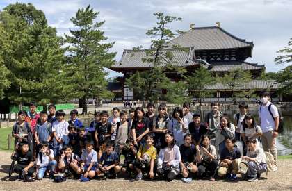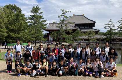 東大寺到着後、大仏殿を背景に学級写真、大仏とご対面、班別行動と進んでいます。朝の宇治市は大雨でしたが、宿を出るときには小雨、奈良県に入ると雨は止み、東大寺では青空が見えるようになりました。引率者一同、驚きと喜びでいっぱいです。また、どこもすいていて、大仏殿はほぼ貸切状態でした。みんな元気にやっています。