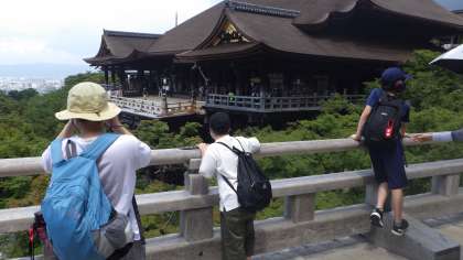 1日目は清水寺や二条城、金閣寺など、多くの歴史的建造物を見学しました。気温が高くとても暑い中、頑張って歩きました。京都の食事では、子どもたちにとって初めて目にするものがあったかもしれませんが、興味津々といった様子で口にする姿が見られました。夕食後の伝統工芸体験活動では、絵付け体験や念珠づくりに挑戦し、見事素敵な作品ができあがりました。