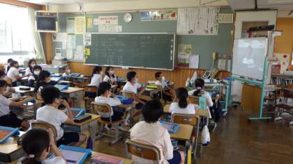 3・4時間目に敷島小学校の4年生11名とオンライン交流をしました。