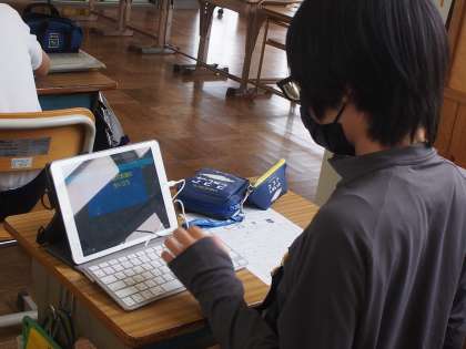 豊田市のICT支援員の方に来校していただき、タブレットを用いたプレゼン資料の作成に取り組みました。