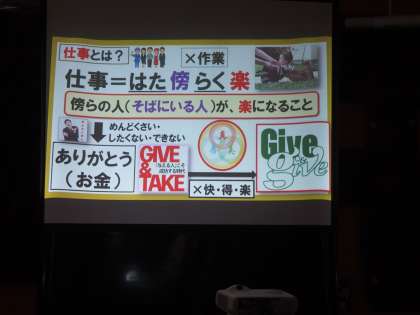 「仕事とはどのようなものなのか」「何を学校で学ぶのか」など、今の学校生活やこれからの生き方を考えるうえでもとても参考になるお話でした。