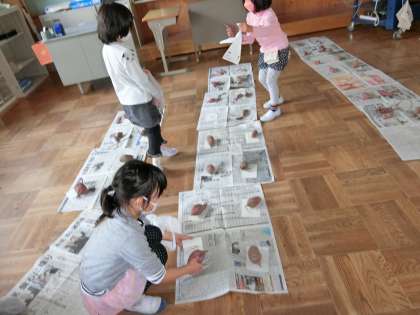 「おいものごはんにする」「外で焼き芋をする」「サツマイモの天ぷらが食べたい」と話す子がいました。持ち帰ったサツマイモの味はいかがでしょうか?