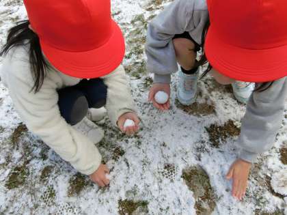 朝雪が積もっていました。雪は多くはありませんでしたが、子どもたちは大喜び。