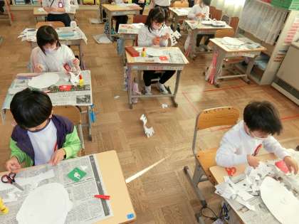 図画工作の授業で、紙版画に取り組んでいます。
