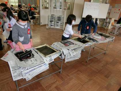 インクをつけたらどんな作品になるのか、どきどきわくわくしながら取り組んでいます。