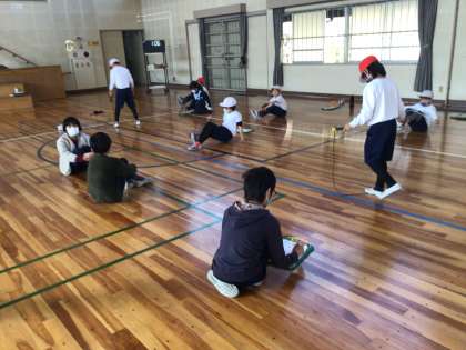5年生34名が、2年生の縄跳び大会のお手伝いをしました。頑張って大会に挑む2年生のため、跳ぶ回数を数えるお手伝いです。数えながら「頑張って」「あと少しだよ」「すごい。たくさん跳んだね」と声をかける5年生。「かわいい!」と2年生に笑いかける姿。とても微笑ましい光景でした。