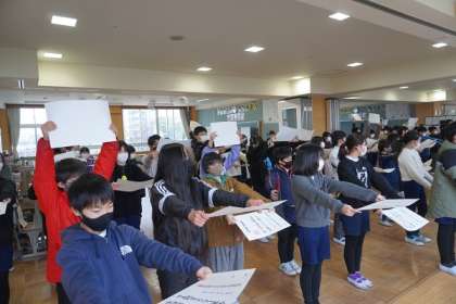 返事のタイミングや受け取る際の動きを確認したり、礼の仕方を練習したりしながら卒業式に向けた練習を始めるとともに、卒業に向けた意識を高める時間にもなりました。