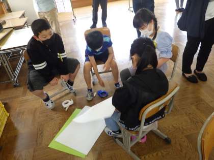 授業のご参観、ありがとうございました。1時間目のタワーづくりでは、作戦タイムの際にお友達の意見を尊重しながら、高いタワーを作成しようと一生懸命考えている姿を見ることができました。タワー作成時も、タワーを支える係、テープでとめる係等うまく分担をしていました。