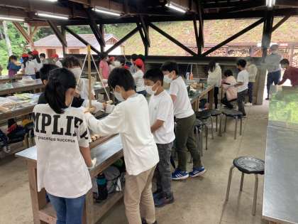 続いてバーベキュータイムです。湿気により火起こしは苦労しましたが、頑張って大切なものを手に入れる貴重な体験になったと思います。おいしく食べて、この後は入浴とファイヤーです。みんな楽しそうに、元気にやっています!この後は本日最後の更新を21時ごろ予定しています。