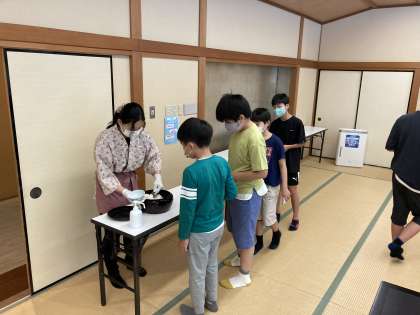 おはようございます。2日目の朝を迎えました。昨夜はみんな早めにぐっすり寝てくれました。また、宿に設けた保健室の利用はゼロで、朝食の様子を見てもみんな元気そうです。ご飯おかわり組もたくさんいました。