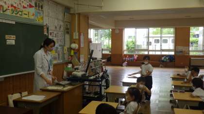 「だれがきゅうしょくをつくっているのかな」というタイトルで食育の学習を行いました。給食が届くまでには、多くの方が働いていることを知りました。そして、どんな気持ちで、給食を運んだり作ってくれたりしているのか、みんなで考えました。センターで働く方の苦労を知り、感謝の気持ちをもつことができました。