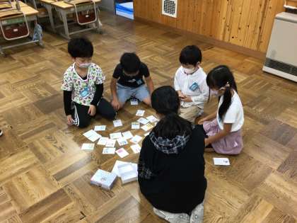 1年生とかるた交流会をしました。この日のために話す言葉を考え、計画を一生懸命してきました。その成果が出せた時間になったと思います。和やかに楽しむ様子が見られました。