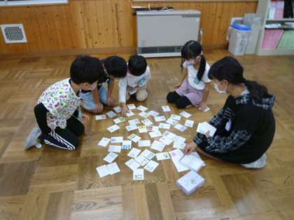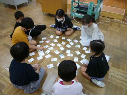 1年生に挙母かるたを通して、挙母小のよさを伝えるために、かるた交流会を企画してくれました。1年生は、毎日の宿題で、挙母かるたの音読に取り組んでいます。交流会当日は、グループごとに輪になり、かるたを楽しみました。上の句を聞いただけで絵札を取っている子もいました。次回も楽しみです。