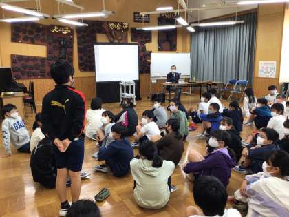 藤田医科大学から講師を招いて、癌についての講話をしていただきました。癌は生活習慣病の一種であること、日本人の2人に1人が一生のうちにかかる可能性があること、検診を受けることの必要性や、予防のために食生活の見直しや適度な運動が大切であることなどをお聞きしました。平均寿命は伸び続けており、小6である子供たちの平均寿命は、107歳なのだそうです。健康に長生きし、充実した生活を送るために、今から生活習慣について見直していきたいと考えさせられる授業でした。