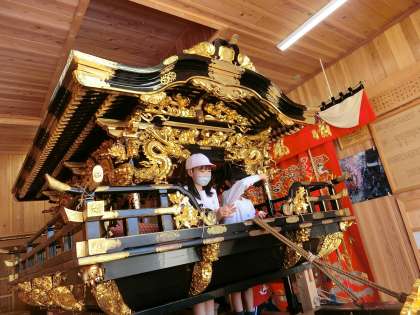竹生町へ行き、挙母まつりの山車を見学しました。初めて見る山車や獅子舞に興味津々で、目を輝かせていました。竹生町の方々の協力で山車にも乗らせていただき、みんなに手を振ったり、紙吹雪を飛ばしたりして楽しむことができました。